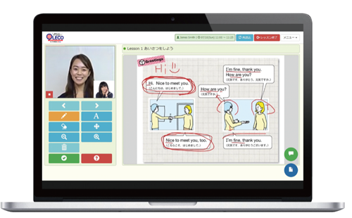 実は、「OLECO」は中学生の内容にも対応していて、高校生への提供も準備中とのこと。中高生も、これからのことを考えると、紙ベースの授業ではダメです。miyajukuでは、テキストの英文をネイティブが発音してくれるシステムを導入してはいますが、覚えた英語を使う、という面ではまだまだです。