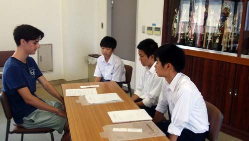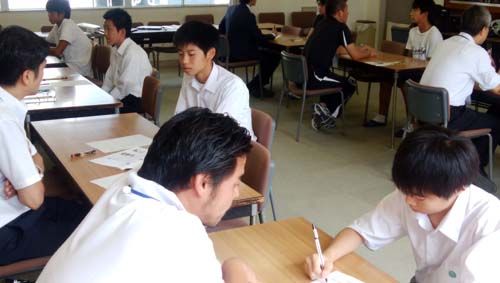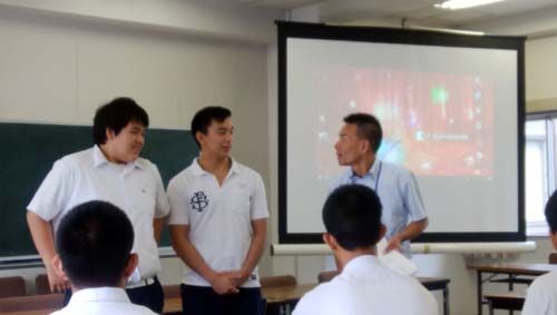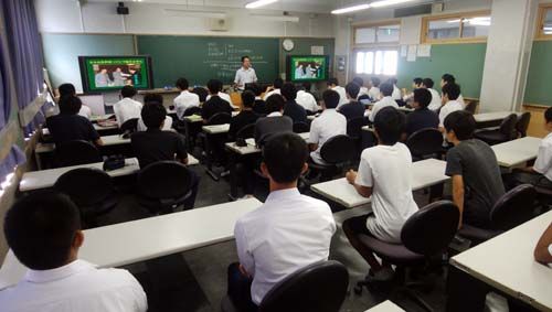 つづけて、高校の授業って、ということで、英語、数学、国語のミニ授業。英語は先ほどの留学生が英文を読んでリスニングの勉強、数学は校長先生自らの授業、国語は小説の読解についてです。