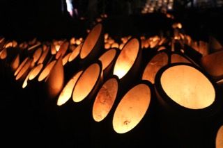 江ノ島の龍口寺の竹灯籠です。竹の中でゆらめくロウソクの灯りが幻想的でした。