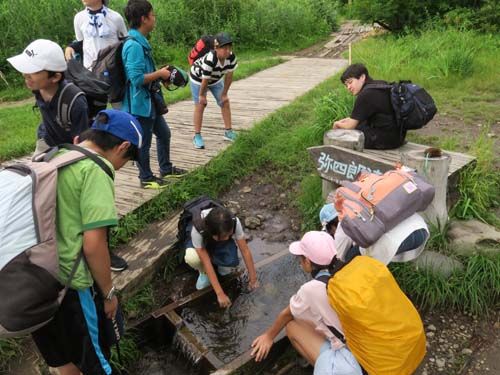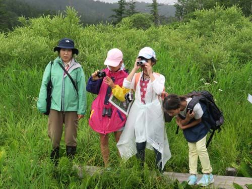 まずは、尾瀬の自然を守るための取り組みとして、トイレの屎尿処理をどうしているかについてレクチャーをうける。基本的に「バクテリア」を利用して水と汚泥に分け、汚泥はヘリコプターで運んでいるとのこと。その後、湿原を歩きながら、咲いている植物たちを観察。