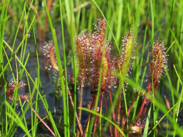 8時10分。白砂田代湿原に。ここには、食虫植物のナガバモウセンゴケが群生しています。ねばねばの液でトンボも補食してしまいます。水の中にはアカハライモリがいました。泳ぐ姿がかわいいです。環境省レッドリストでも準絶滅危惧種になっています。