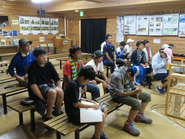 尾瀬沼を半周して尾瀬沼ビジターセンターに9時40分着。良いペースです。みんな足取りが軽やかです。20分ほど休憩して、ビジターセンターでスライドを見ながら、尾瀬の自然、環境保護への取り組みなどのレクチャーを受けます。みんなメモをとりながらしっかりと学習しました。