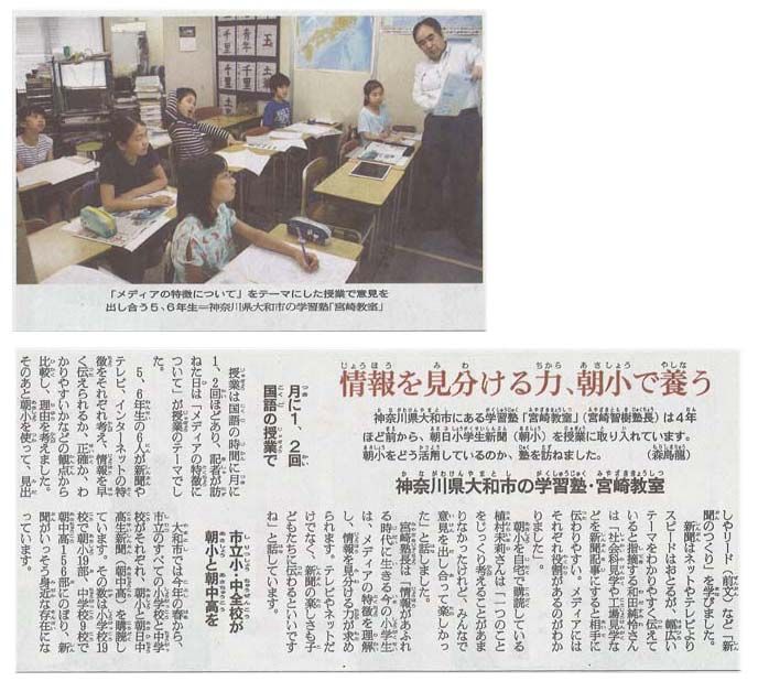 新聞をとっている方は是非ともご覧になって下さい。また、大和市の小学校は全校で「朝日小学生新聞」をとっていますので、そちらを開いてもらえば載っています。