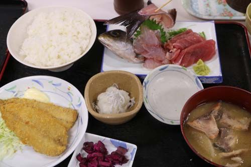写真のご飯はも小田原漁港内の「市場食堂」でたべた「お刺身定食」です。ここは何度も訪れていますがお薦めですよ。ただ、お昼時に行くと長い待ち時間になるので、11時頃が良いでしょう。