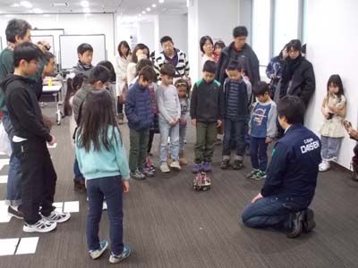 大阪から、このワークショップで利用したロボットの製作をおこなっている「(株)ダイセン」の田中社長にも来ていただき、ロボットへの熱い「思い」も話していただきました。さらには、世界大会レベルのロボットの実機も持ってきていただき、子どもたちの前で動かしてもらいました。何十年後かには、ロボットと人間によるワールドカップサッカー大会、本当に実現しているかもしれません。