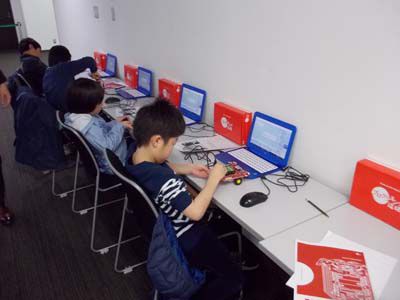保護者の方向けには「どうしてプログラミングなのか」といった簡単なセミナーを実施し、子どもたちは90分間のワークショップに挑みました。