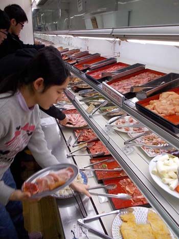 いやいや、よく食べました。肉だけでなく、揚げ物などの総菜、ソフトドリンク、アイスなどのデザートも食べ放題。白米食べながら焼き肉焼いて、片手にはソフトクリームなどというわけのわからない食べ方の子もいました。