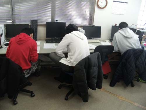 高3生はほとんどがそれぞれの挑戦に向かっています。今日の受験がない2名が、朝からK先生の英語の個別特訓を受けています。1人は東京△科大、もう1人は学△院大の過去問演習中です。すでに合格の知らせも入りはじめていますが、もう少しまとまってから報告します。