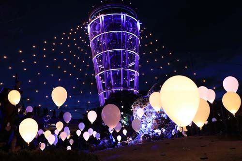 その後、江ノ島の冬の風物詩「湘南の宝石」のフィナーレの「バルーンイベント」へ。幻想的な風景が広がった。