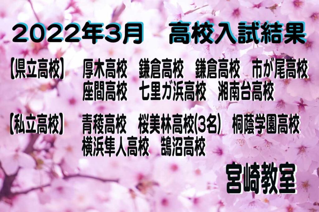 県の高校入試の合格発表が終わりました。今年の生徒たちの頑張りは以下のようになりました。 【県立高校】 厚木高校 鎌倉高校 鎌倉高校 市が尾高校 座間高校 七里ガ浜高校 湘南台高校 【私立高校】 青稜高校 桜美林高校 桜美林高校 桜美林高校... -