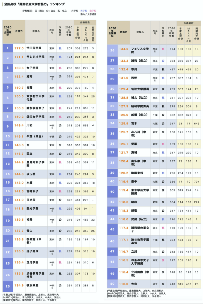 「全国高校 難関私立大学合格力」ランキング・ベスト50【2021年入試版】 DIAMOND online https://diamond.jp/articles/-/250358?page=2 より DIAMOND online のランキングです。「早慶上理」「MARCH」への合格者数をもとに難関私大への合格力を数値化... -