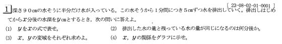 考える習慣づけを意識している。昨日の中2の小テストの問1。一次関数の利用の問題だ。難易度も教科書の例題レベル。それでも、半分以上の生徒ができていなかった。それどころか、グラフが右上がりになっていた生徒が何人もいた。「1分間に5cmずつ排出して...