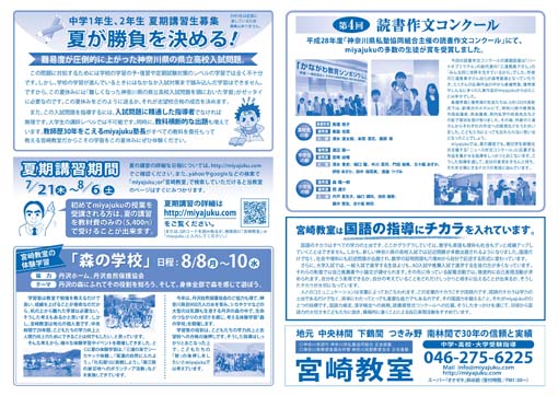来週から夏の講習です。miyajukuも講習のお知らせのチラシを、先週、新聞折り込みとポスティングであわせて16,000枚ほど入れました。皆さんはこのぐらいチラシを入れると問い合わせがたくさんあるだろう、と思っていませんか? 実は、ほとんど問い合わせは... -