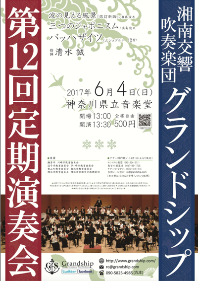 たまには吹奏楽はどうですか(^^)2017年6月4日(日) 神奈川県立音楽堂(神奈川県横浜市西区紅葉ヶ丘9-2)開場13:00 開演13:30 全席自由500円指揮: 清水誠 波の見える風景「改定新版」(真島俊夫)三つのジャポニスム(真島俊夫)バッハザイツ(J.... -