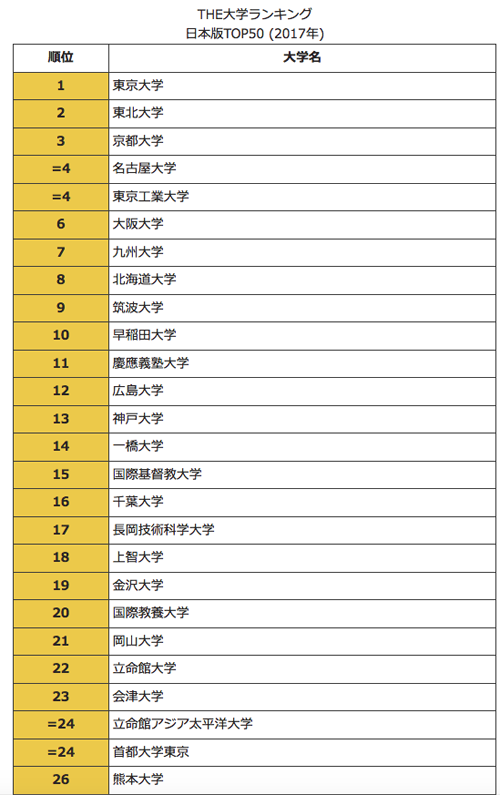 日本の大学ランキング