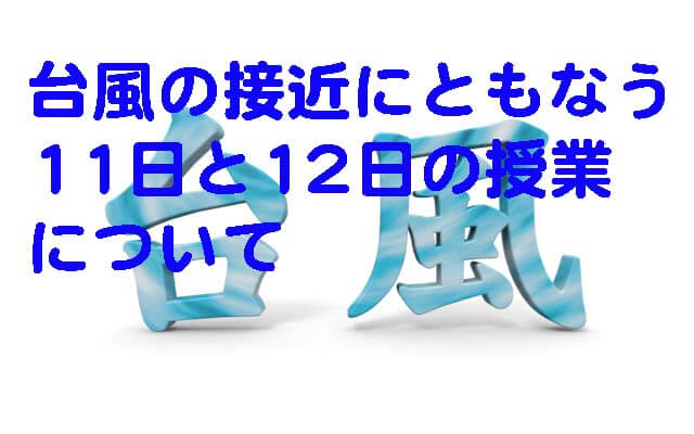 大型の台風19号が関東地方を直撃する予想です。今日11日(金)と明日12日(土)の授業については以下のようにします。 11日(金) [su_highlight background="#fdf893" color="#f62020"]平常通りの授業をおこないます。[/su_highlight]雨が降っていますので気を...