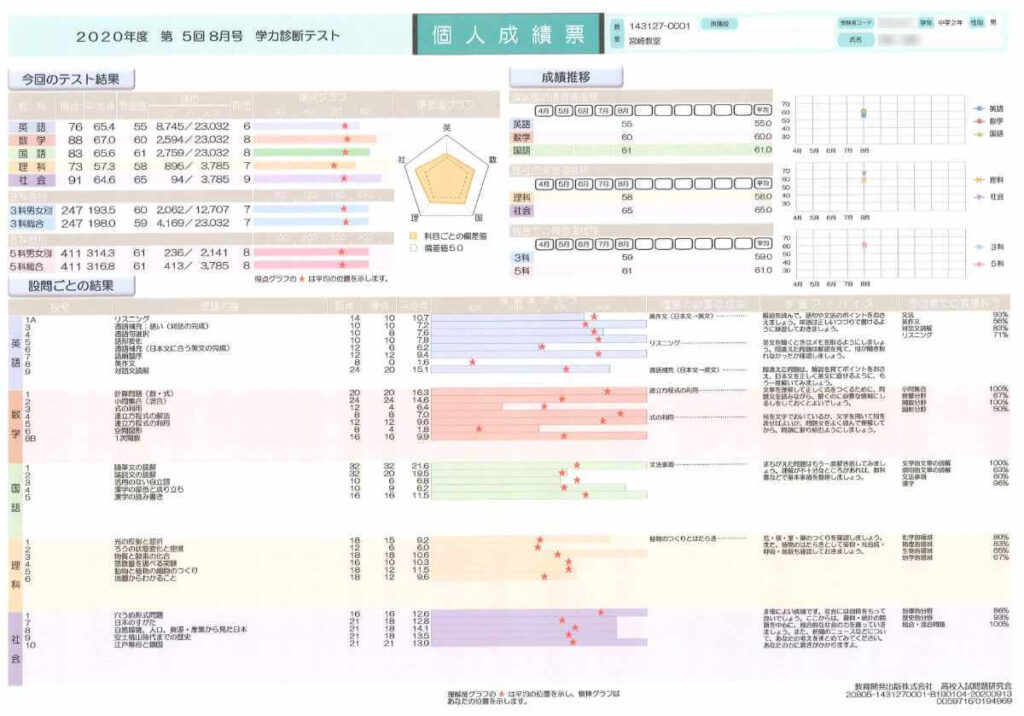この模擬試験を実施した目的はつぎの2つです。① 当該学年の1学期までの学習内容をしっかりと理解できているかの確認② 公立中学に進学する予定の同学年の生徒の中での相対評価を知る ①については学校のテストなどで満点をとっていたとしても、今回の模試... -