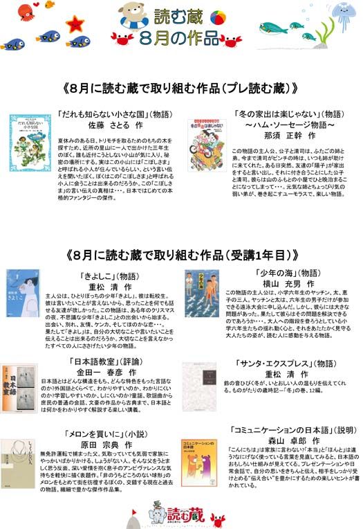 夏休みです。ある程度まとまった時間がとれます。4月以来、読み終えていない「読む蔵」の作品をどんどん読んでいってしまいましょう。また、小学生については「語彙トレ」という冊子を使っての「語彙力アップ」もおこなっていきます。文脈の中で「語彙」を... -