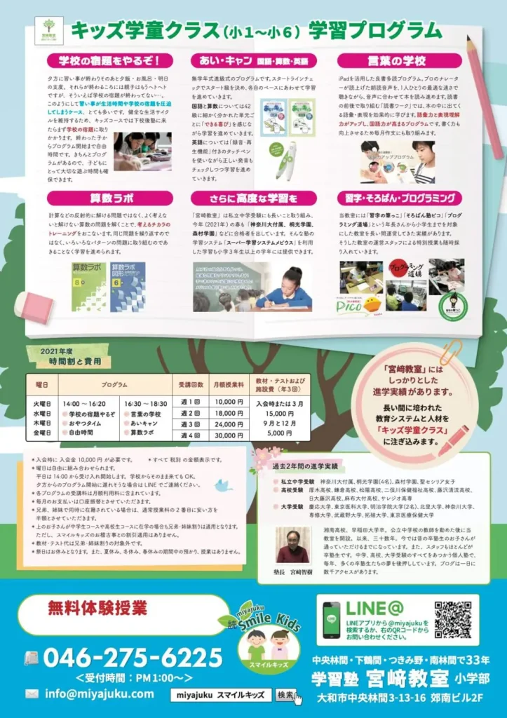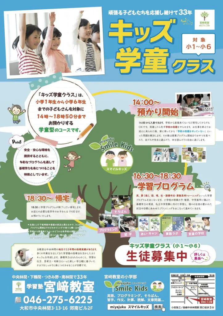 キッズ学童クラスのチラシPDFはこちら → キッズ学童クラスチラシ(PDFファイル)